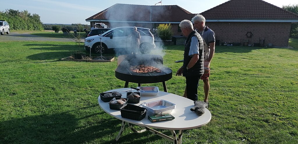 Traditionen tro blev det nye klubår hermed skubbet igang hos Asta og Heine efter en coronapause på næsten halvandet år. Der blev disket op med grillmad, alverdens fine salater og kager til kaffen.